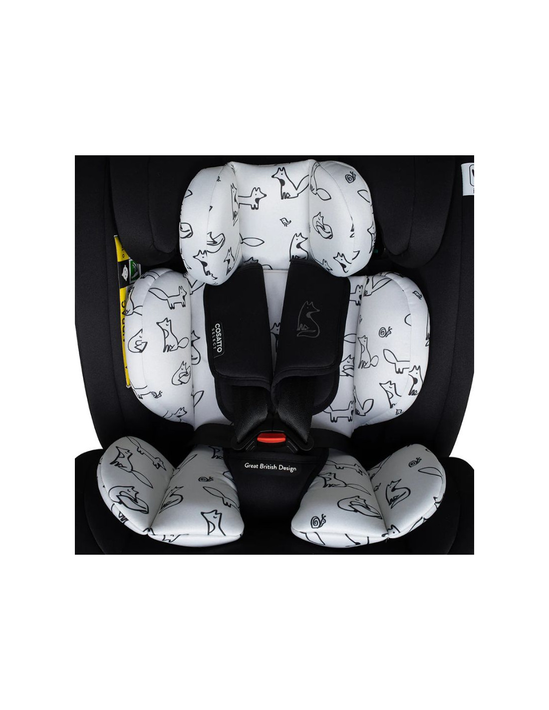 Страничните панели на седалката и подплатените вложки от пяна, абсорбираща енергията, осигуряват защита при страничен удар. Освен това има ексклузивната COSATTO  5-точкова плюс система против бягство. 5-точковата плюс система е прикрепена към колана. Това намалява пространството, през което детето ви обикновено би могло да прокара ръцете си. Това им дава по-малко място за извиване - повишавайки безопасността по време на пътуване. При тестове 9 от 10 деца не можеха да измъкнат ръцете си от колана, когато беше прикрепена 5-точковата плюс система против бягство. Предлага се с водеща в индустрията 3-годишна гаранция за вашето спокойствие.