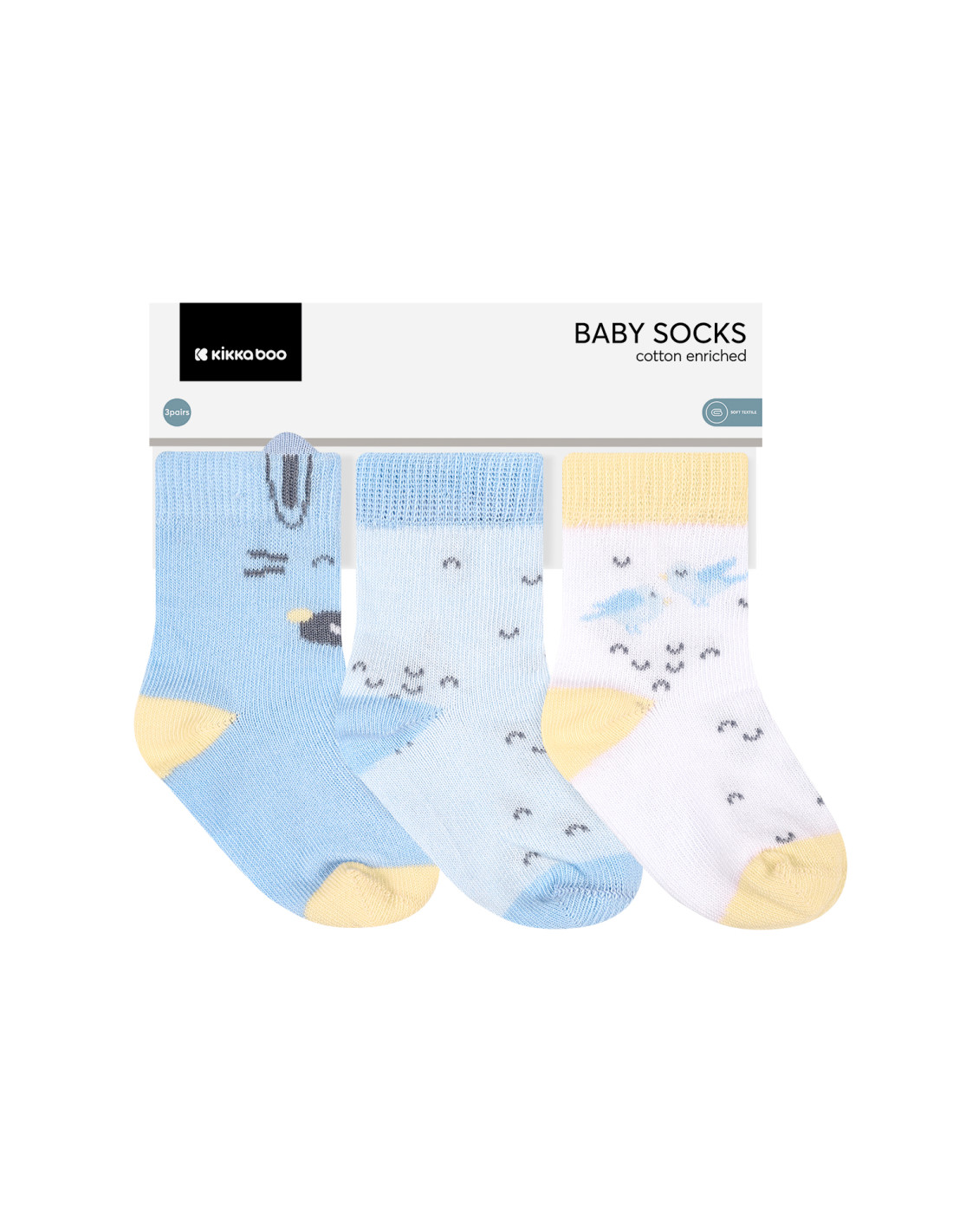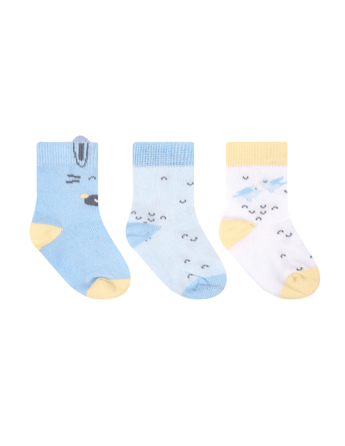 • Комплект от 3 чифта меки бебешки чорапки със стилен дизайн в нежни цветове;