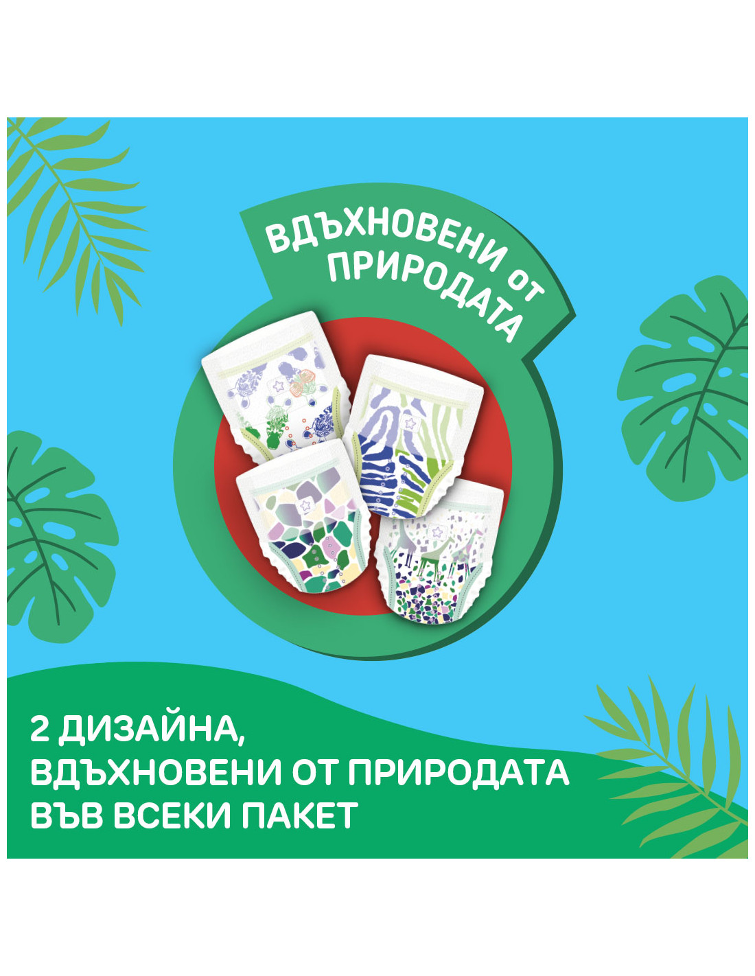 Комфортни гащички от меки и висококачествени материали, с прецизно прилягане за свобода на движенията, двойни бариери за допълнителна защита от странично протичане и бързо попиващи канали за суха и здрава бебешка кожа. Без агресивни съставки - без аромати, без лосион и без целулоза, избелена с хлор. Дерматологично тествани. С уникални, модерни и игриви дизайни, вдъхновени от природата. За комфорт и приключения без притеснения.