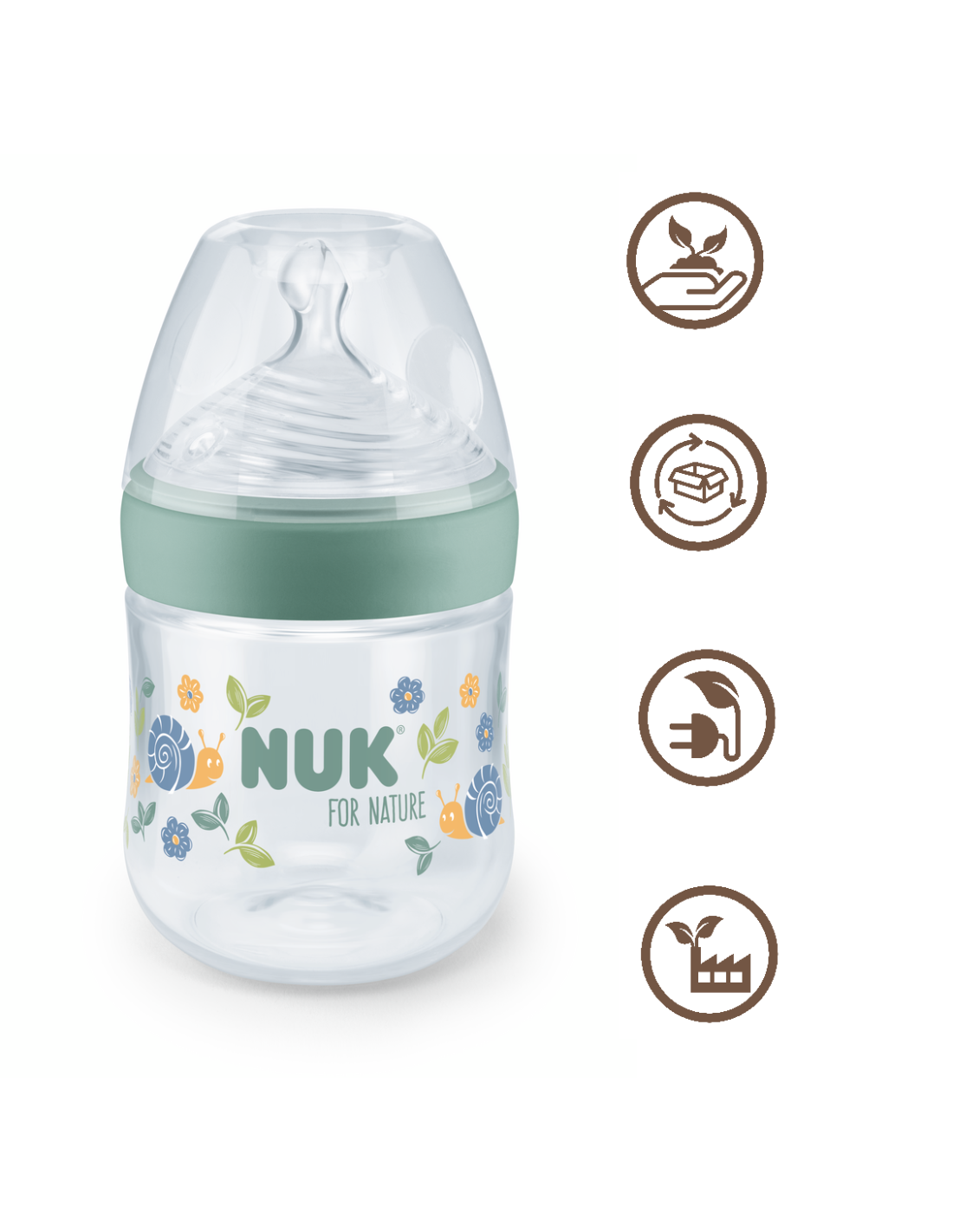 NUK for NATURE Шише РР Temperature Control 150мл. със силиконов биберон 0+ S - Зелен